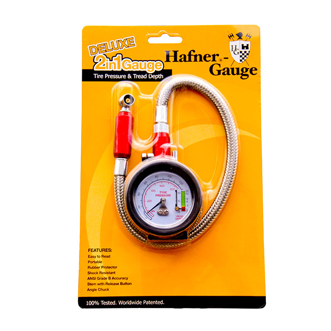 錶徑:2" 準度:±2.5% F.S. or ±3% ~ ±2% ~ ±3% 壓力範圍:70psi、130psi 胎紋深度:11mm & 14/32" 面板:鋁 頂板:不鏽鋼 指針:鋁黑色、工程塑膠黑色、鐵質黑色 外殼:工程塑膠黑色 透明蓋:壓克力 銅管+洩壓鈕:紅色銅合金 延長管:白鐵編織 45°測壓頭:銅鍍鉻 保護套:黑色橡膠 標準包裝:插卡 + 泡殼 介質:非腐蝕氣體 環境或使用溫度:請聯絡我們瞭解細節 符合規範:環保REACH & RoHS、ANSI B40.100、EN837-3 客製規格可以供應